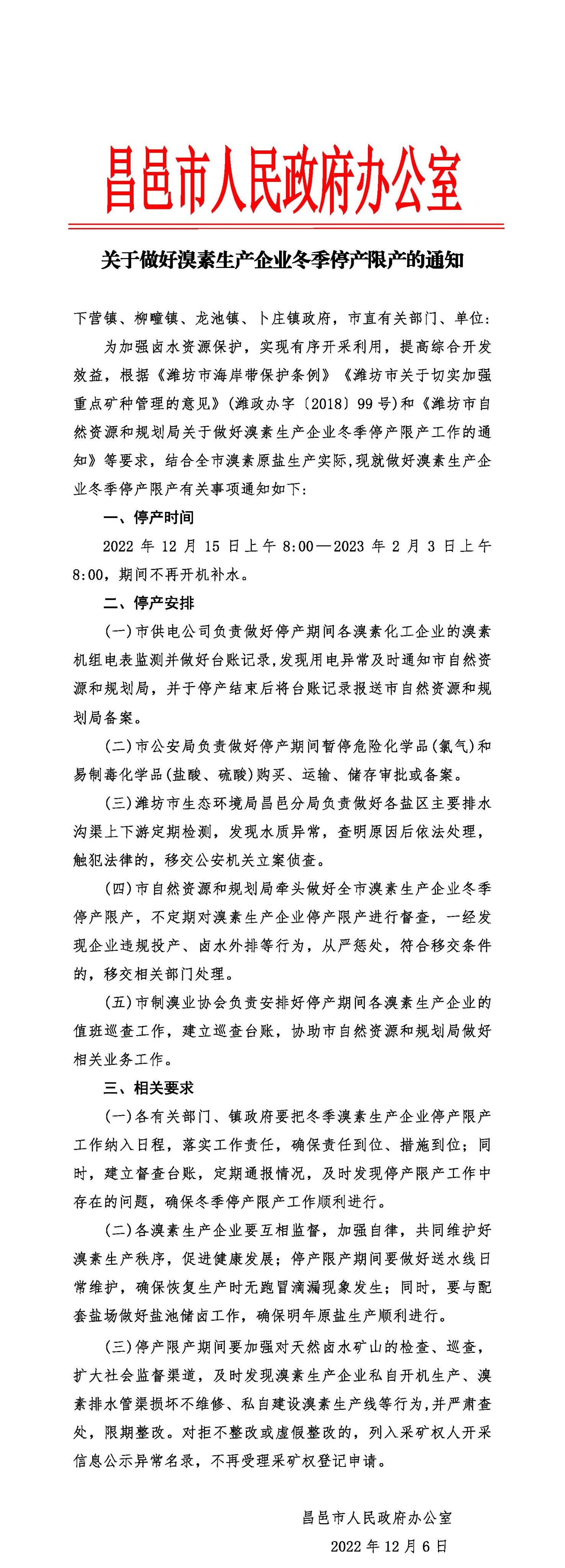 昌邑市冬季限产停产通知